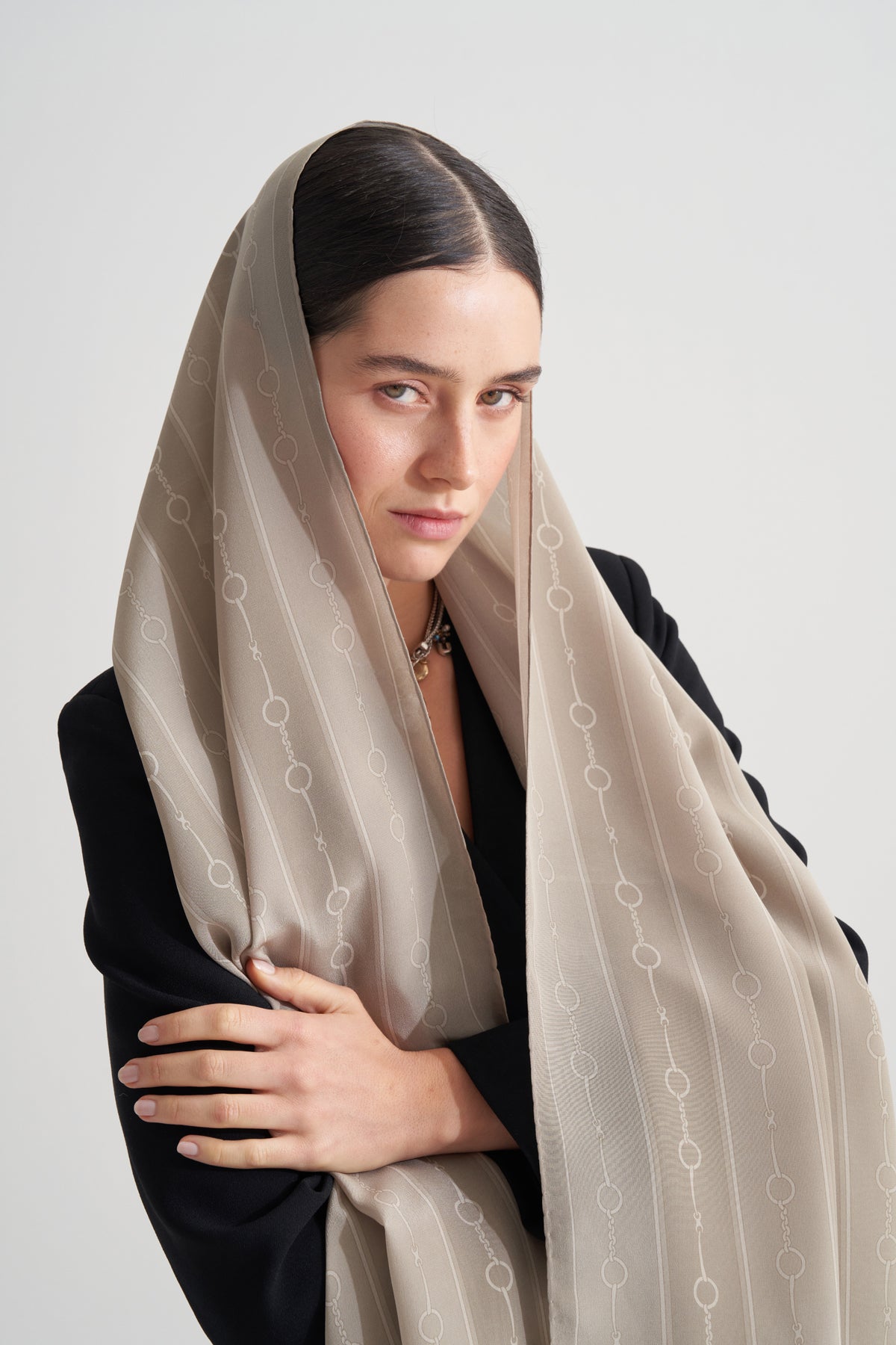 غالبًا ما تُفضّل الأوشحة الحريرية المنقوشة واللامعة في المناسبات الخاصة كالأعراس والخطوبة والتخرج. وعند تنسيقها مع حذاء وحقيبة متناسقة، تُكمّل شالات الحرير أي إطلالة ببراعة.