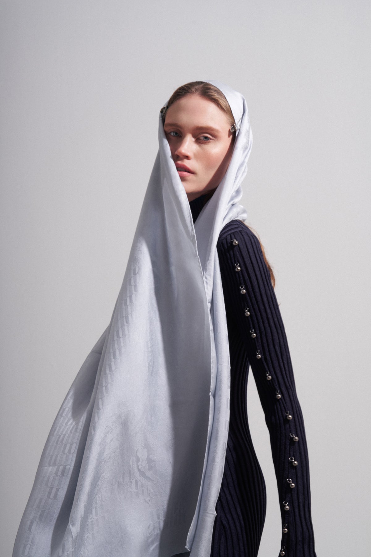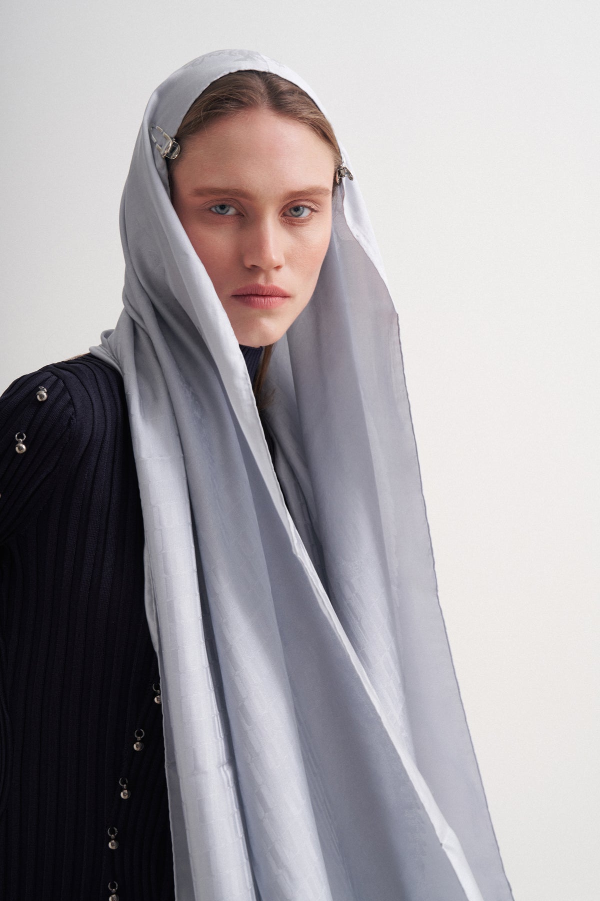 شال جاكار أزرق ثلجي