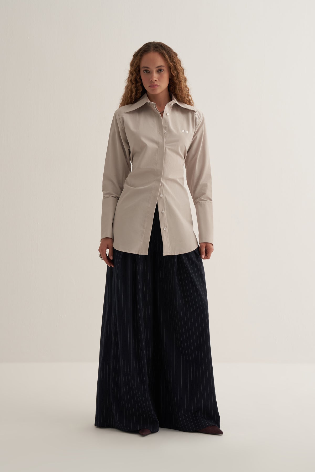 Uzun manşetli kol detayları ile modern bir görünüm oluşturur.