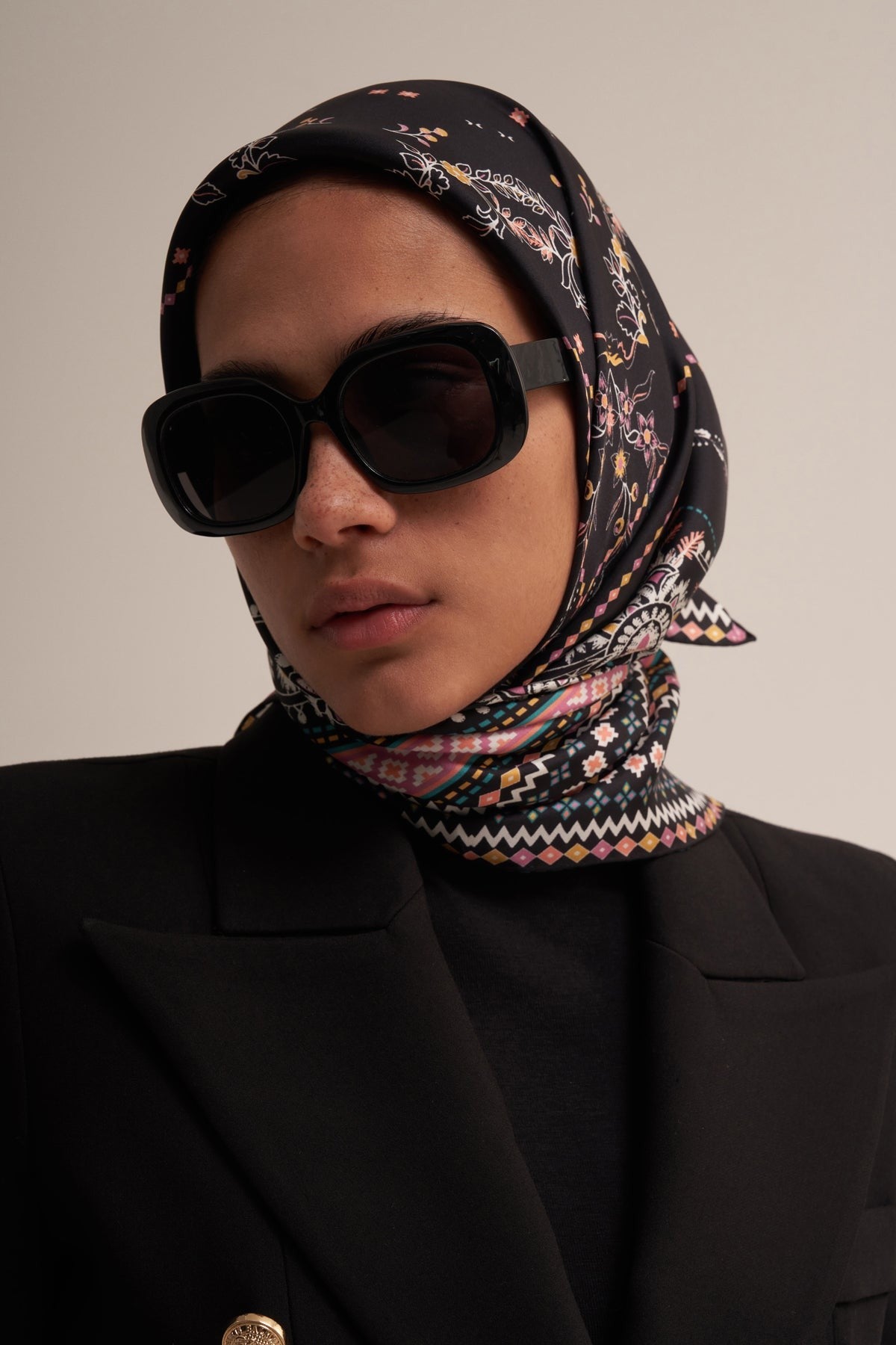 Kare Twill İpek Eşarp İçeriği %100 ipektir. Uzunluk:90 cm en: 90 cm Sadece kuru temizleme yapilir.