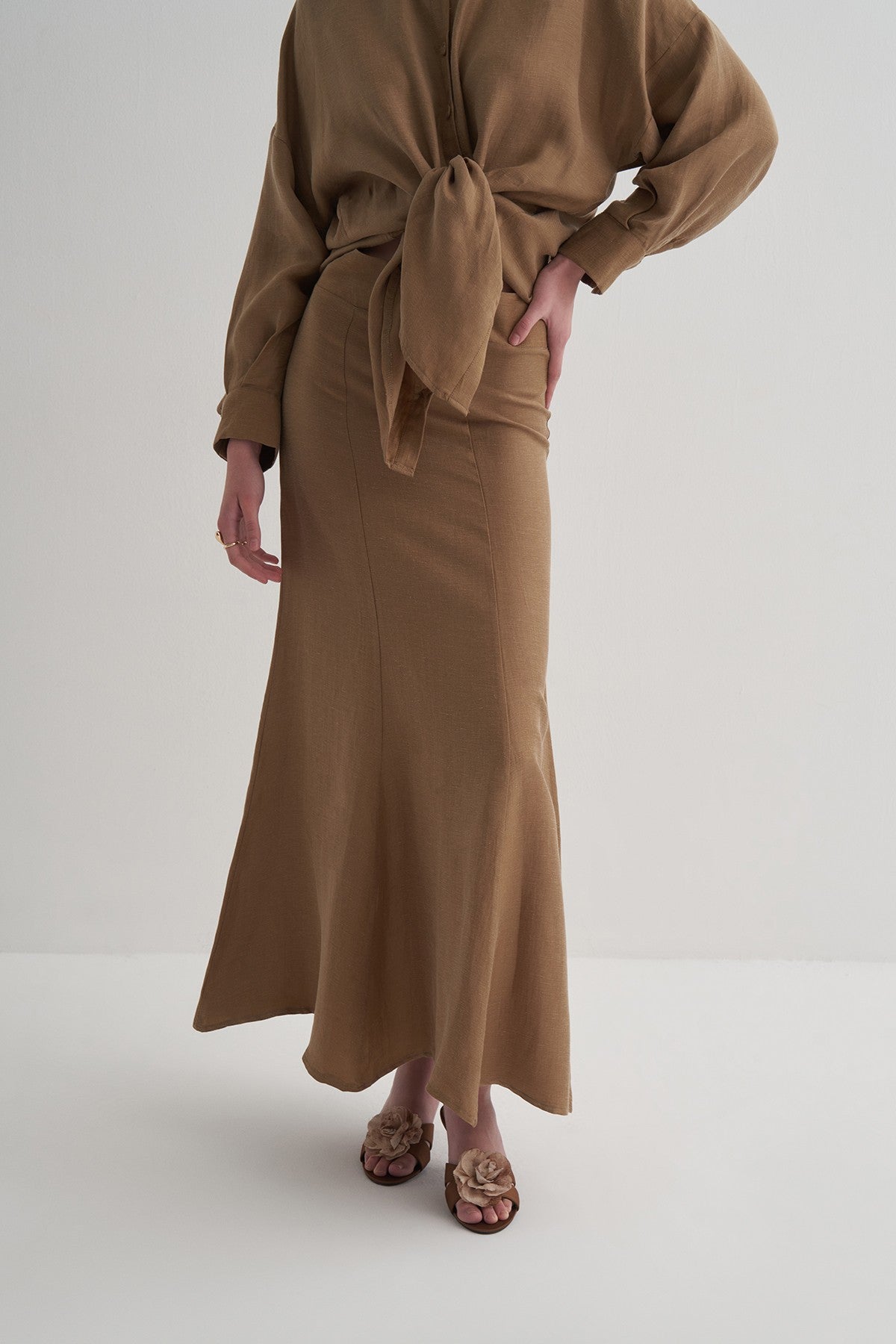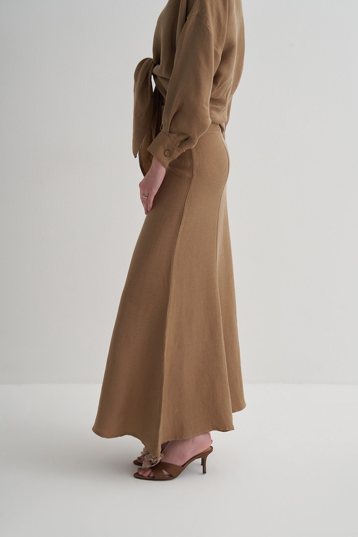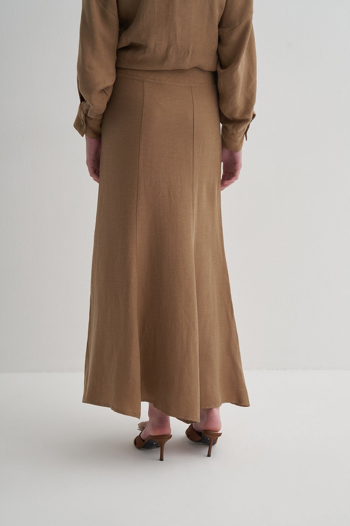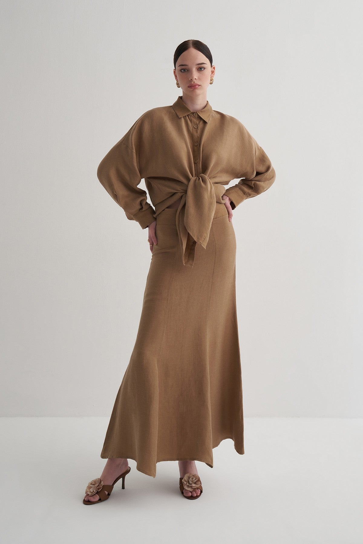 •Cupro’nun ipeksi yumuşaklığı, ketenin doğal yapısıyla birleşerek hem hafif hem dökümlü bir kumaş oluşturur.