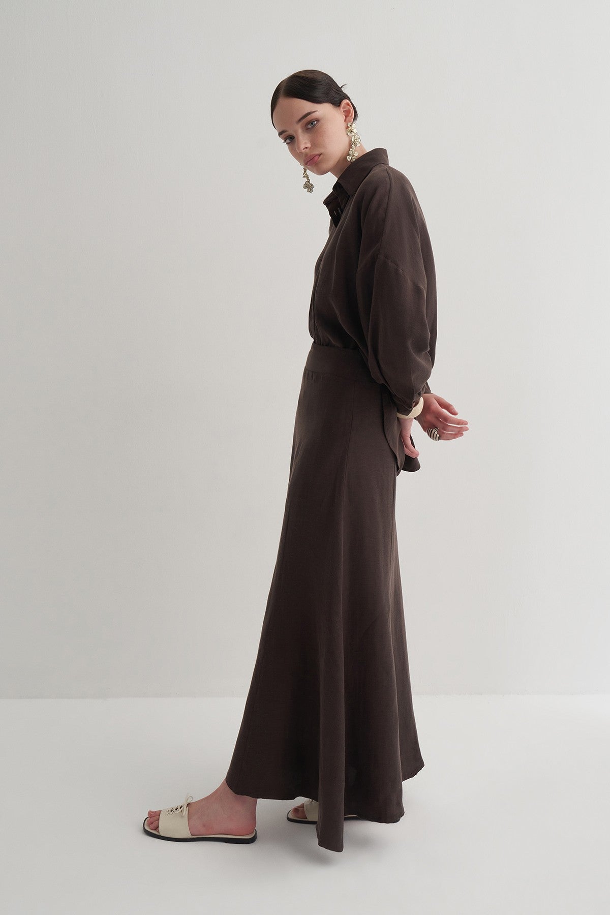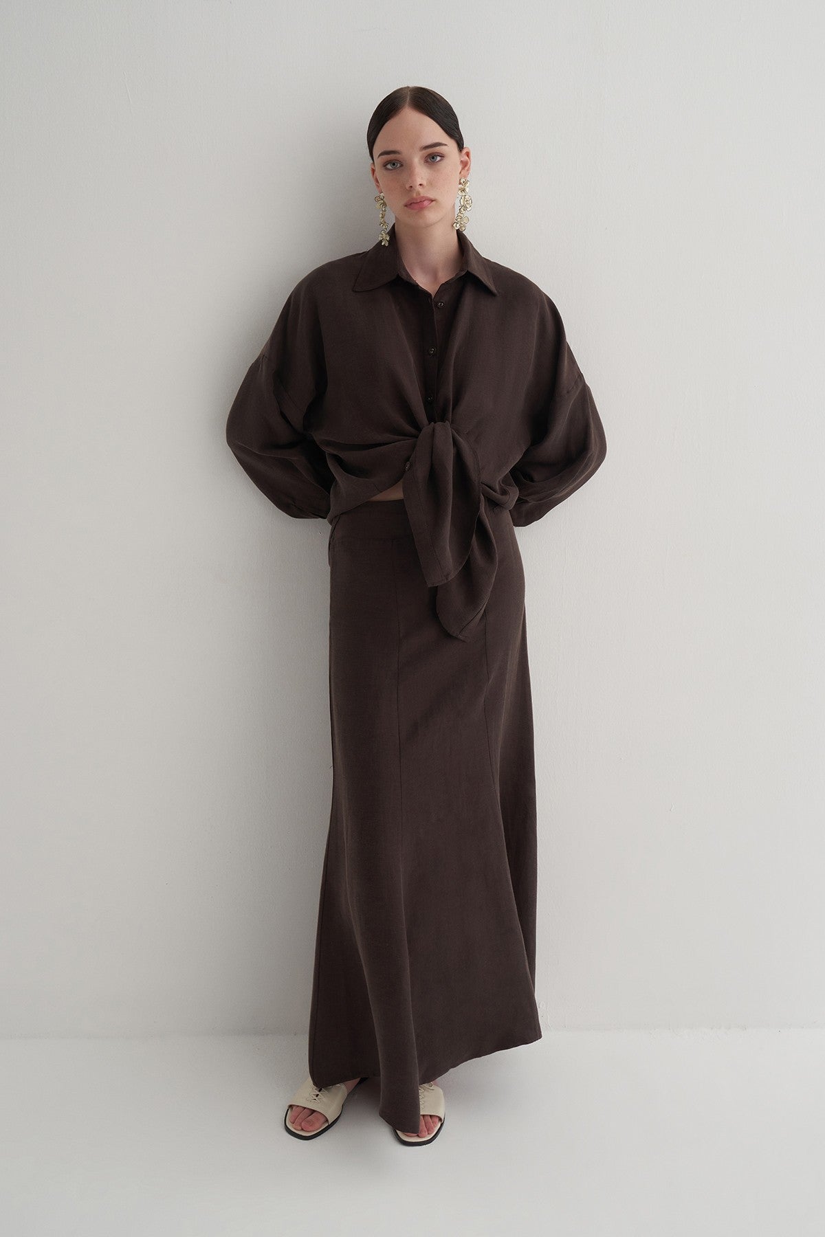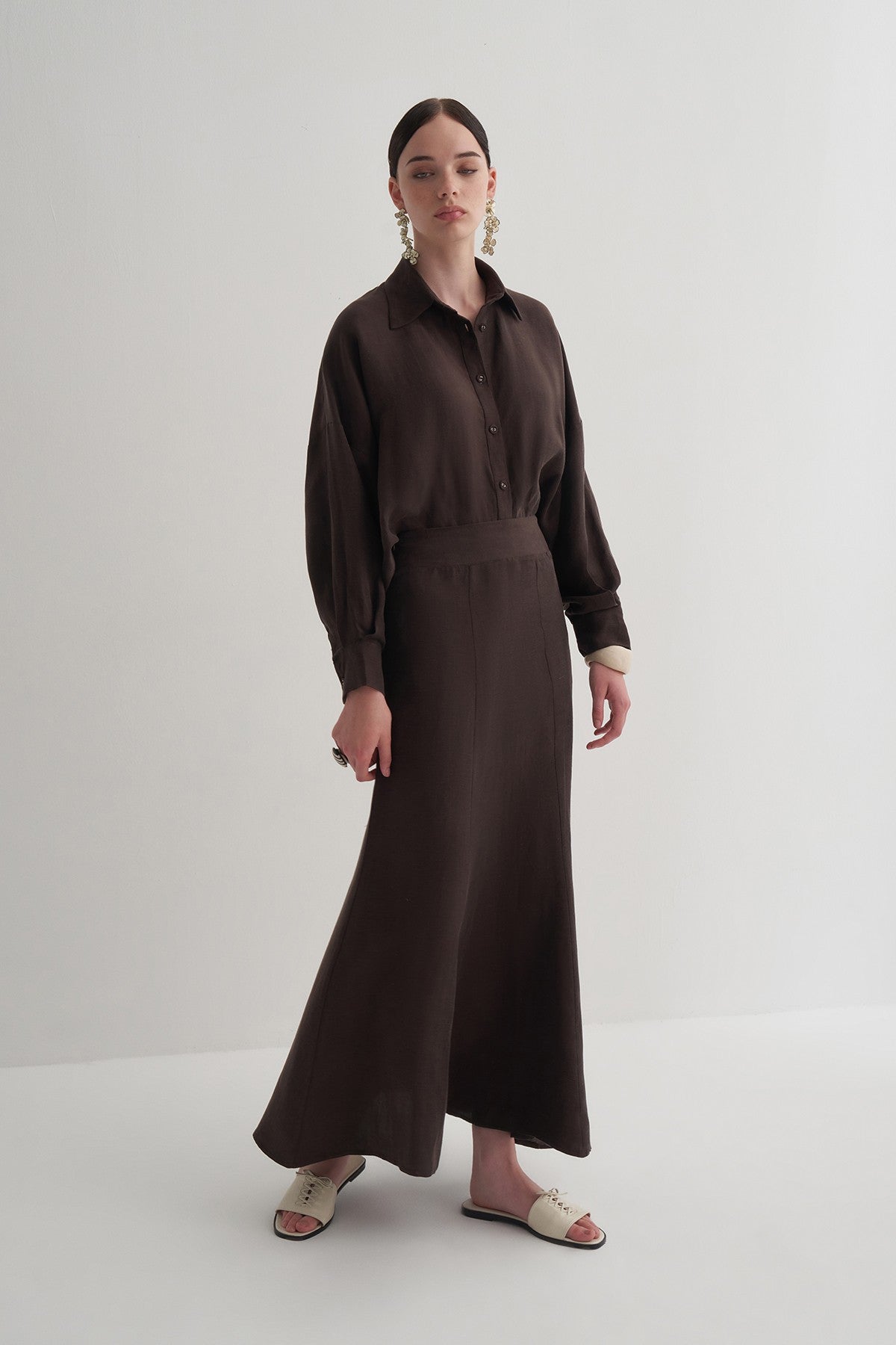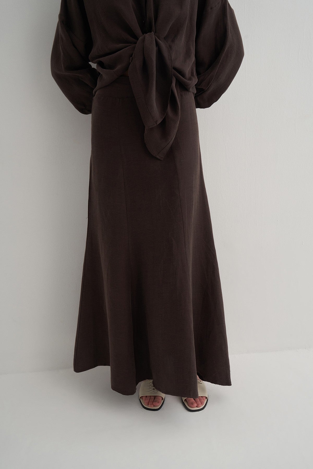 Kahverengi Cupro Keten Etek