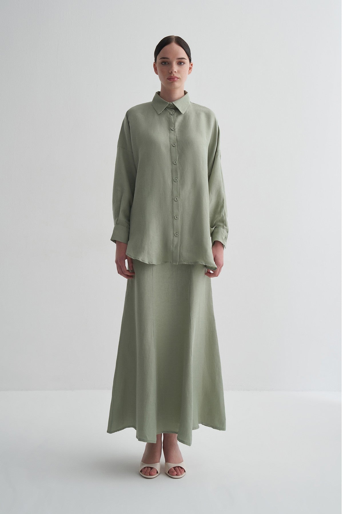 •Cupro’nun ipeksi yumuşaklığı, ketenin doğal yapısıyla birleşerek hem hafif hem dökümlü bir kumaş oluşturur.