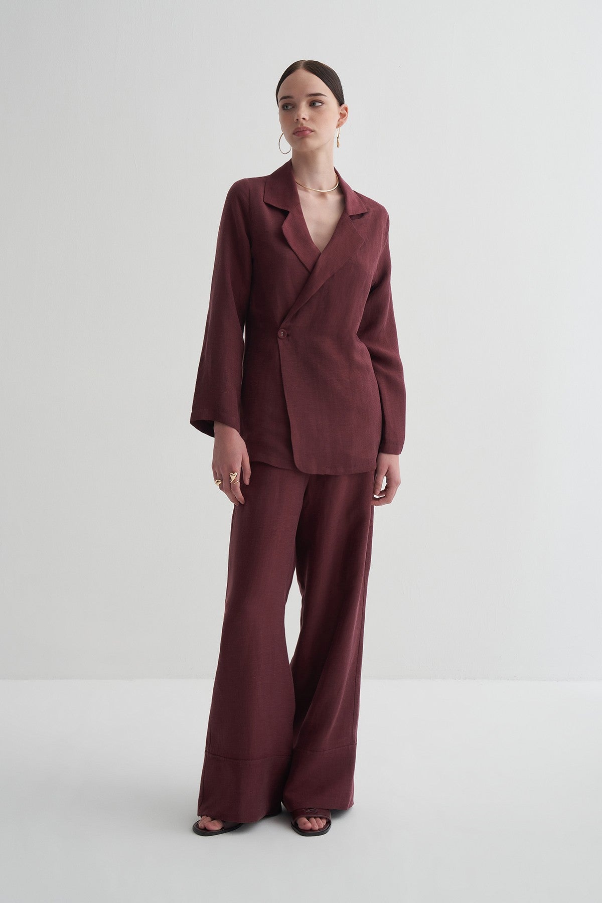•Cupro’nun ipeksi yumuşaklığı, ketenin doğal yapısıyla birleşerek hem hafif hem dökümlü bir kumaş oluşturur.