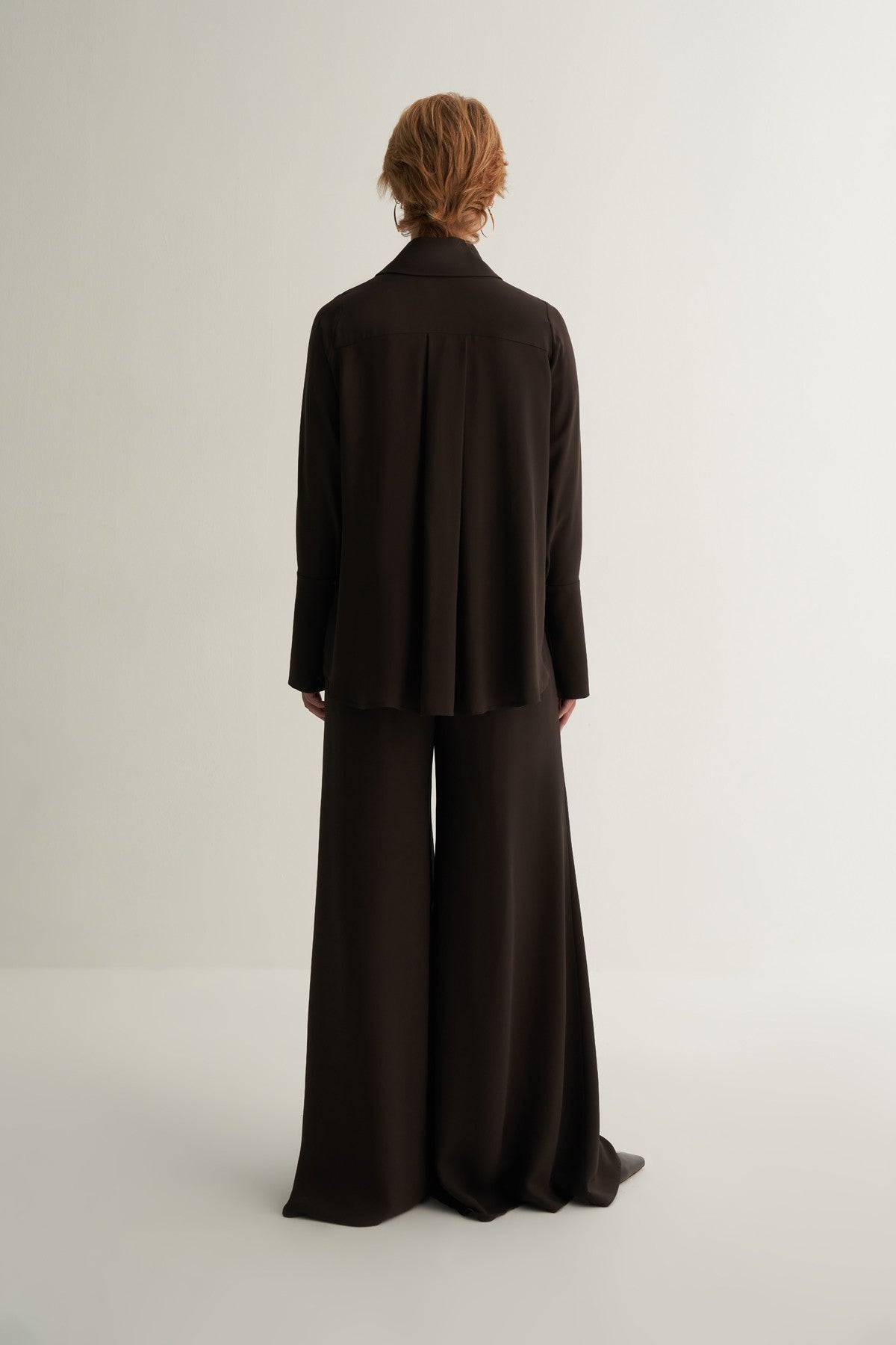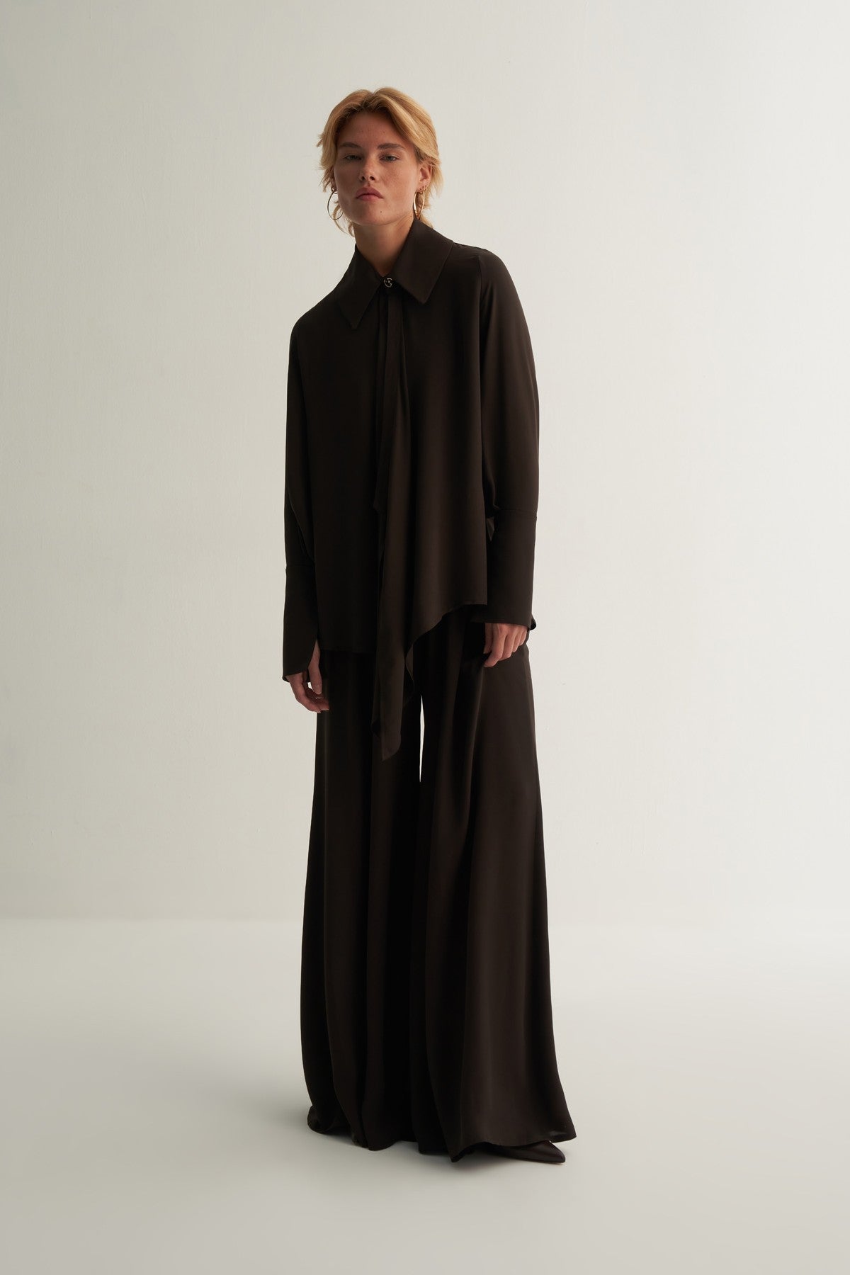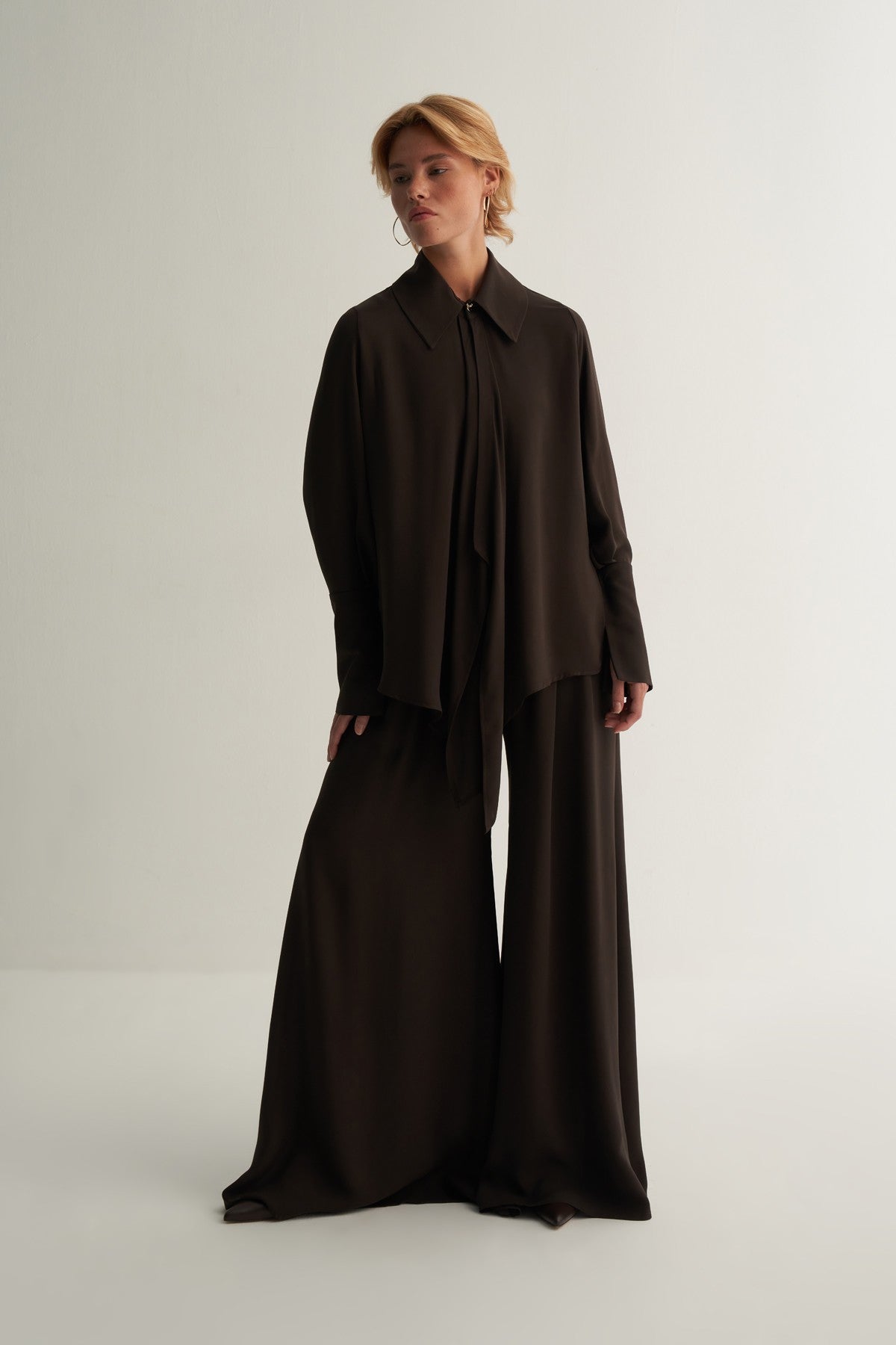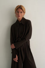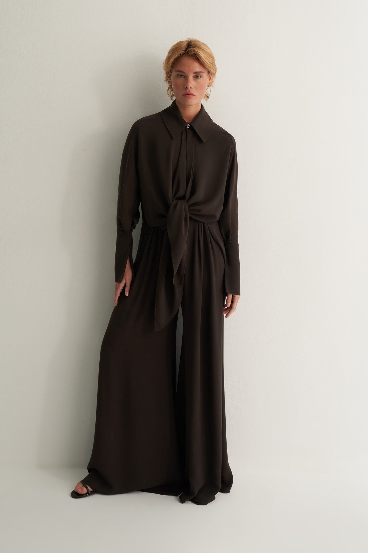 Gömlek isteğe göre bağlanabilen detayıyla farklı kullanım alternatifleri sunar.
