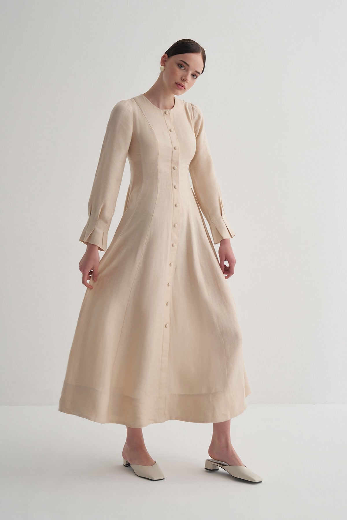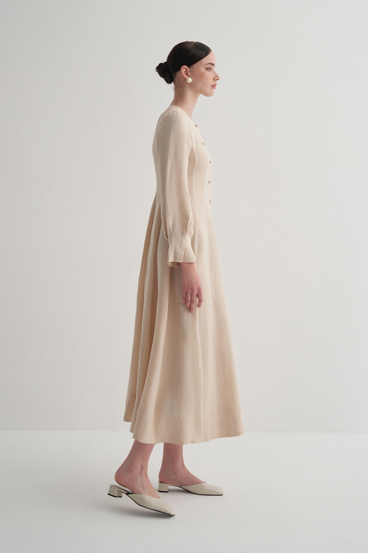 •Cupro’nun ipeksi yumuşaklığı, ketenin doğal yapısıyla birleşerek hem hafif hem dökümlü bir kumaş oluşturur.