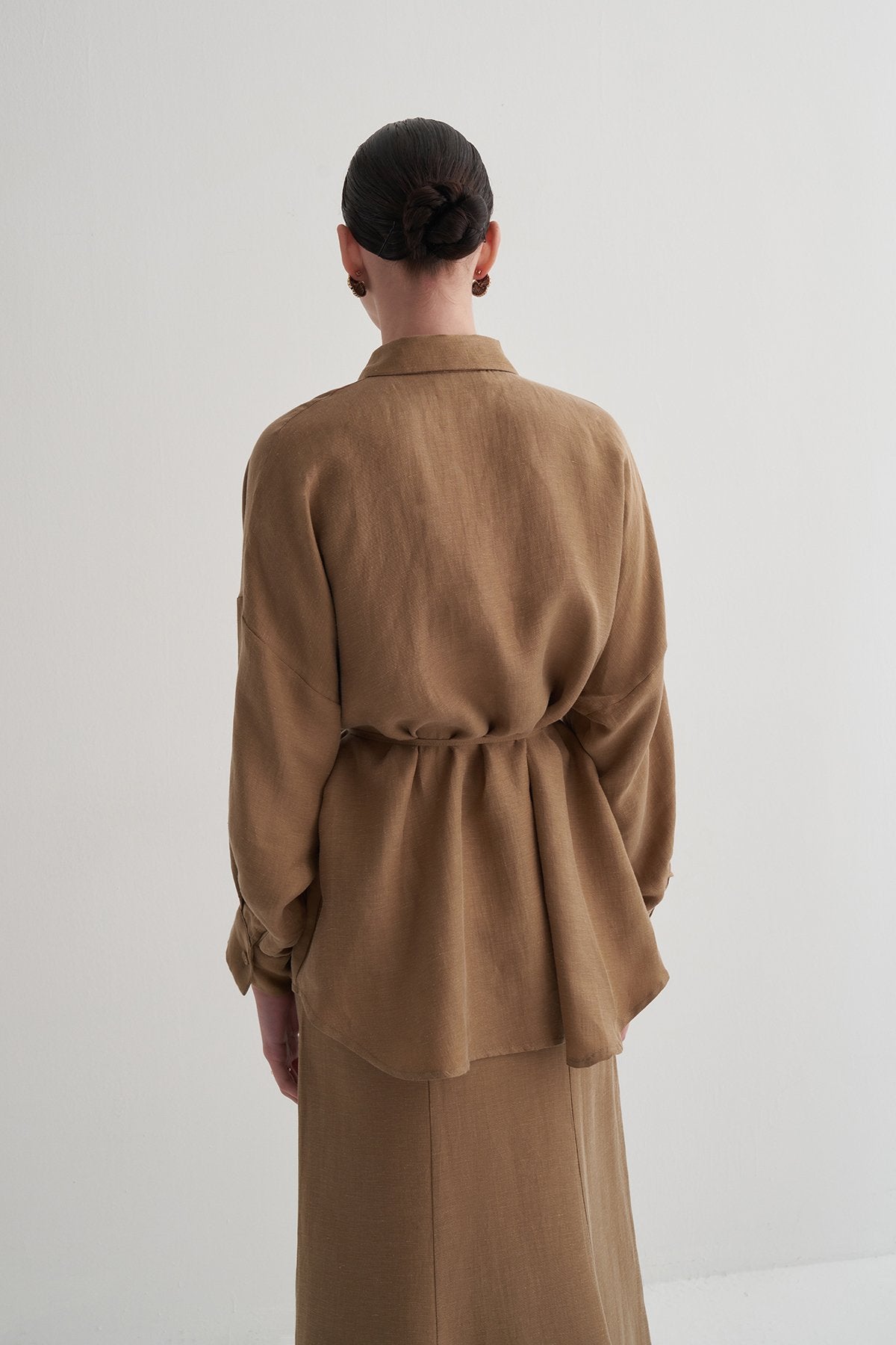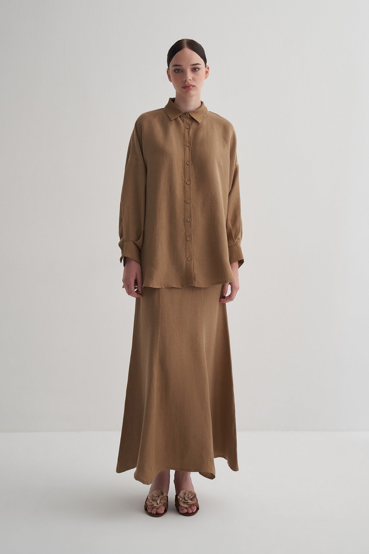 •Cupro’nun ipeksi yumuşaklığı, ketenin doğal yapısıyla birleşerek hem hafif hem dökümlü bir kumaş oluşturur.