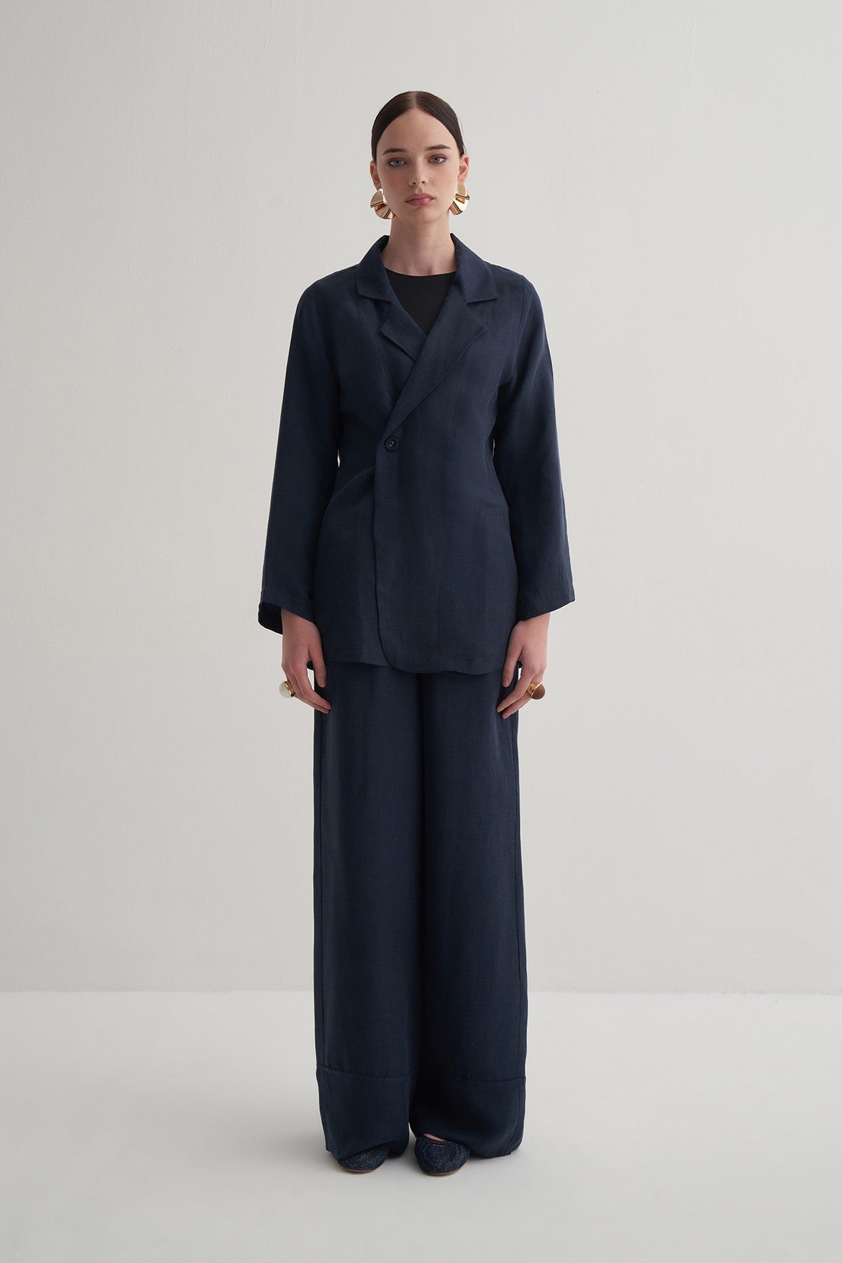 •Cupro’nun ipeksi yumuşaklığı, ketenin doğal yapısıyla birleşerek hem hafif hem dökümlü bir kumaş oluşturur.