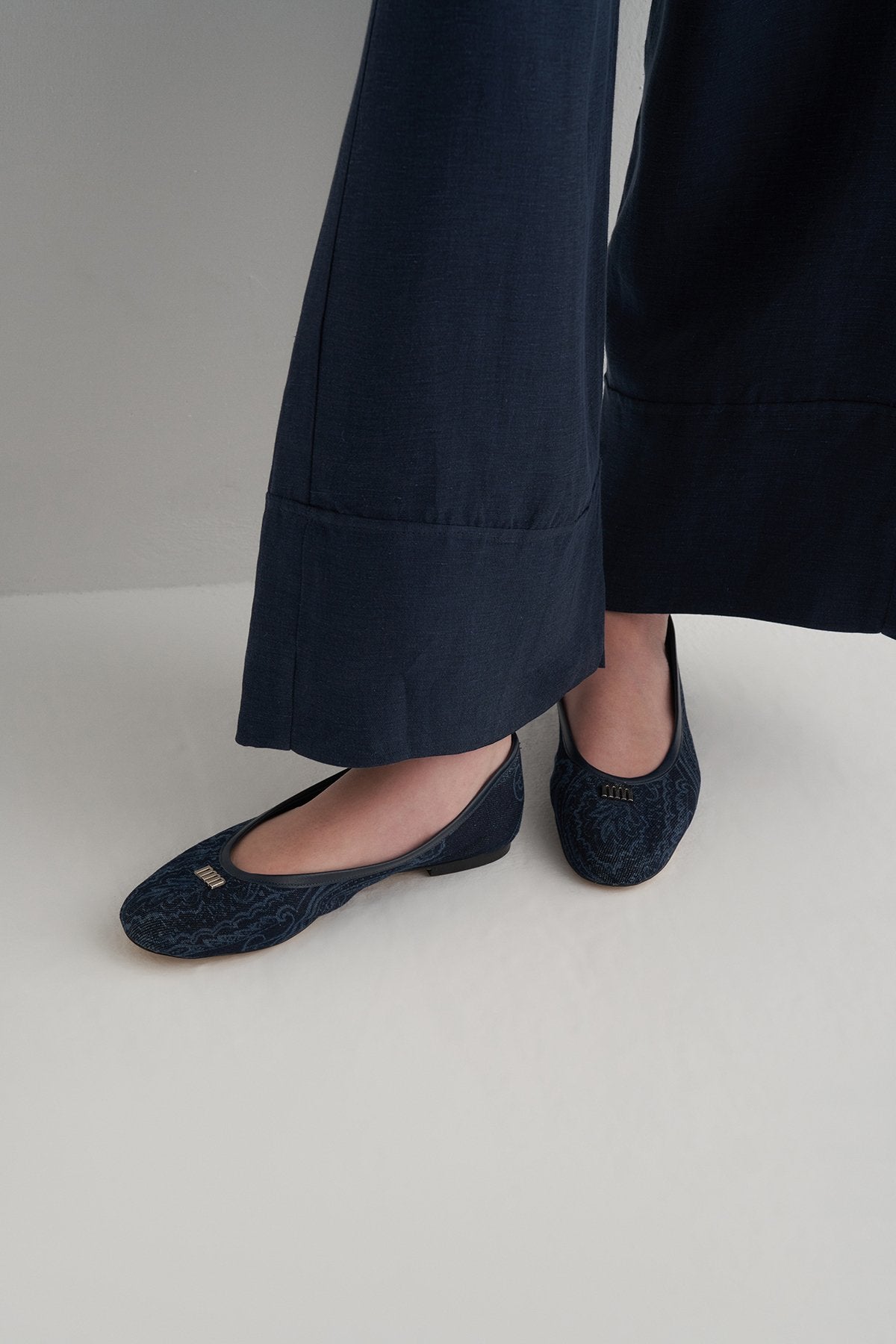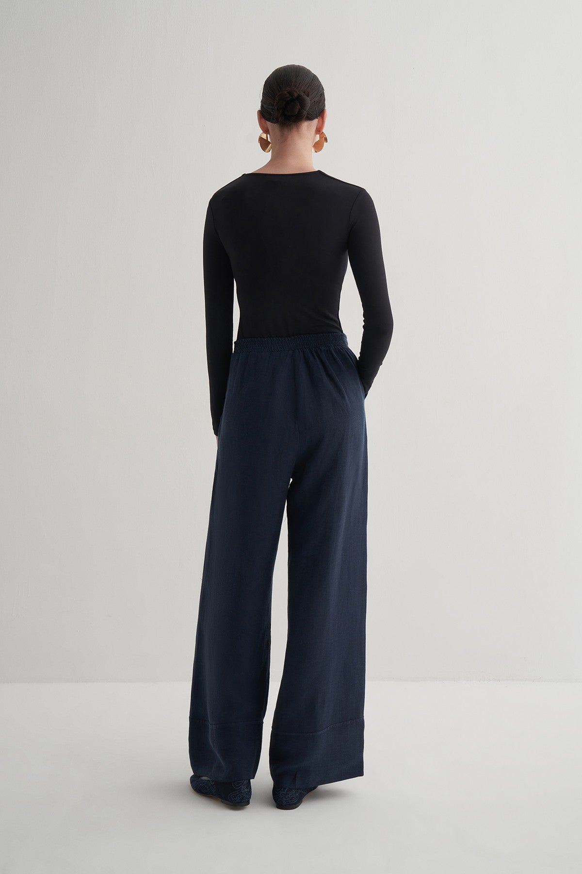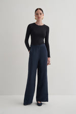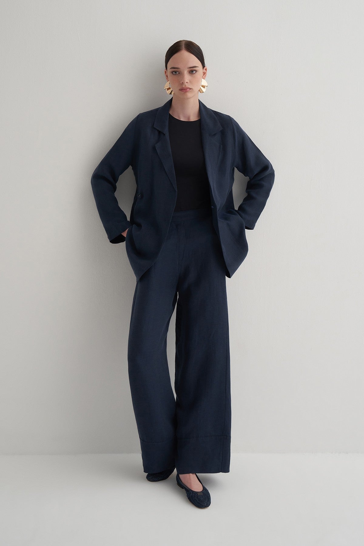 Lacivert Cupro Keten Pantolon