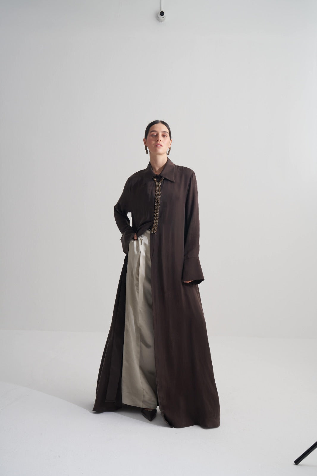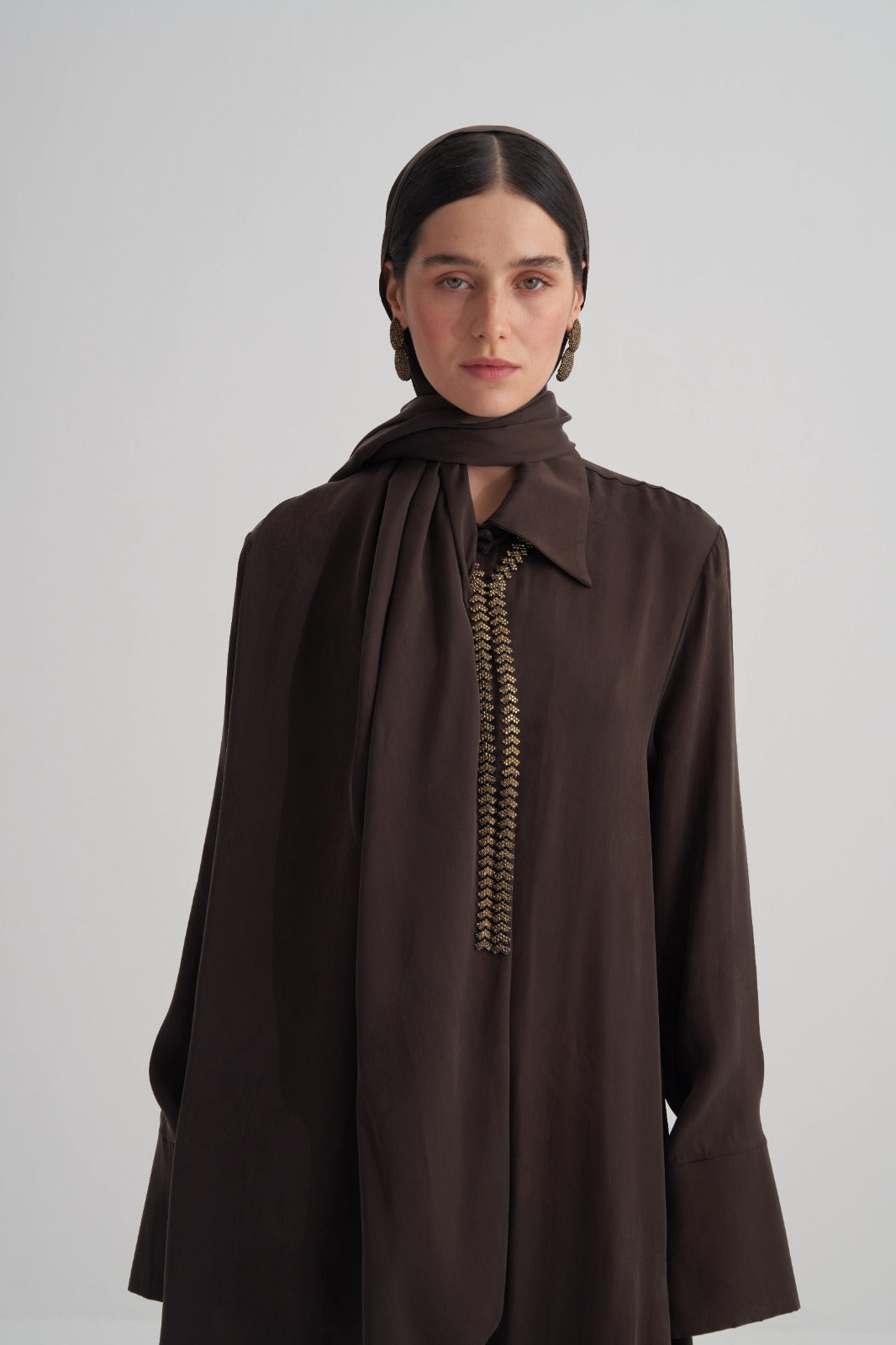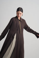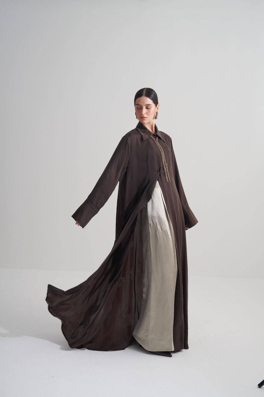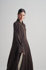 Kahverengi Cupro Jakar Çiçekli Abaya