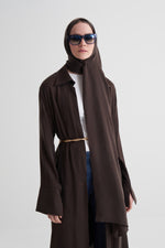 Kahverengi Cupro Jakar Çiçekli Abaya Şal Takım