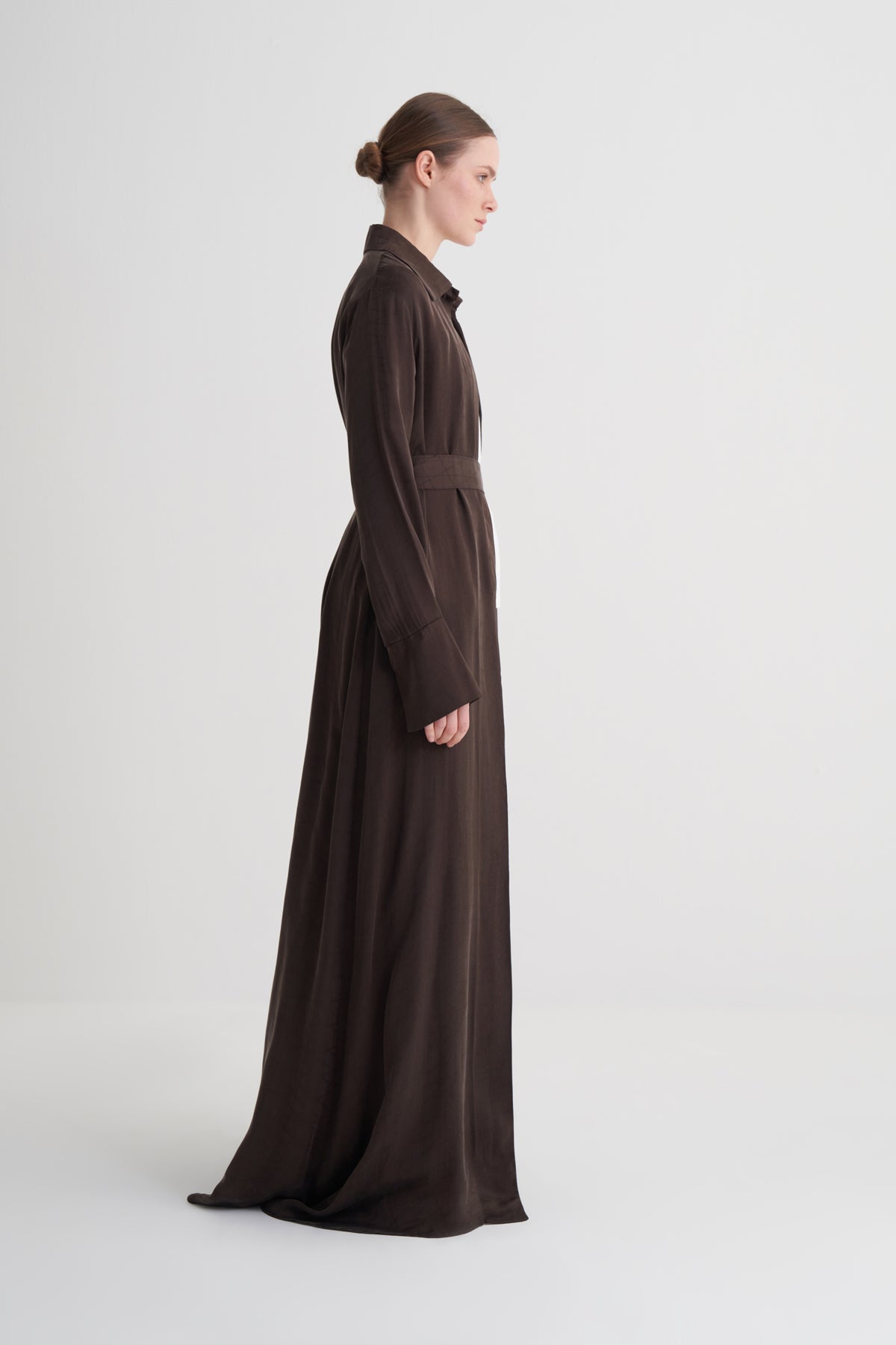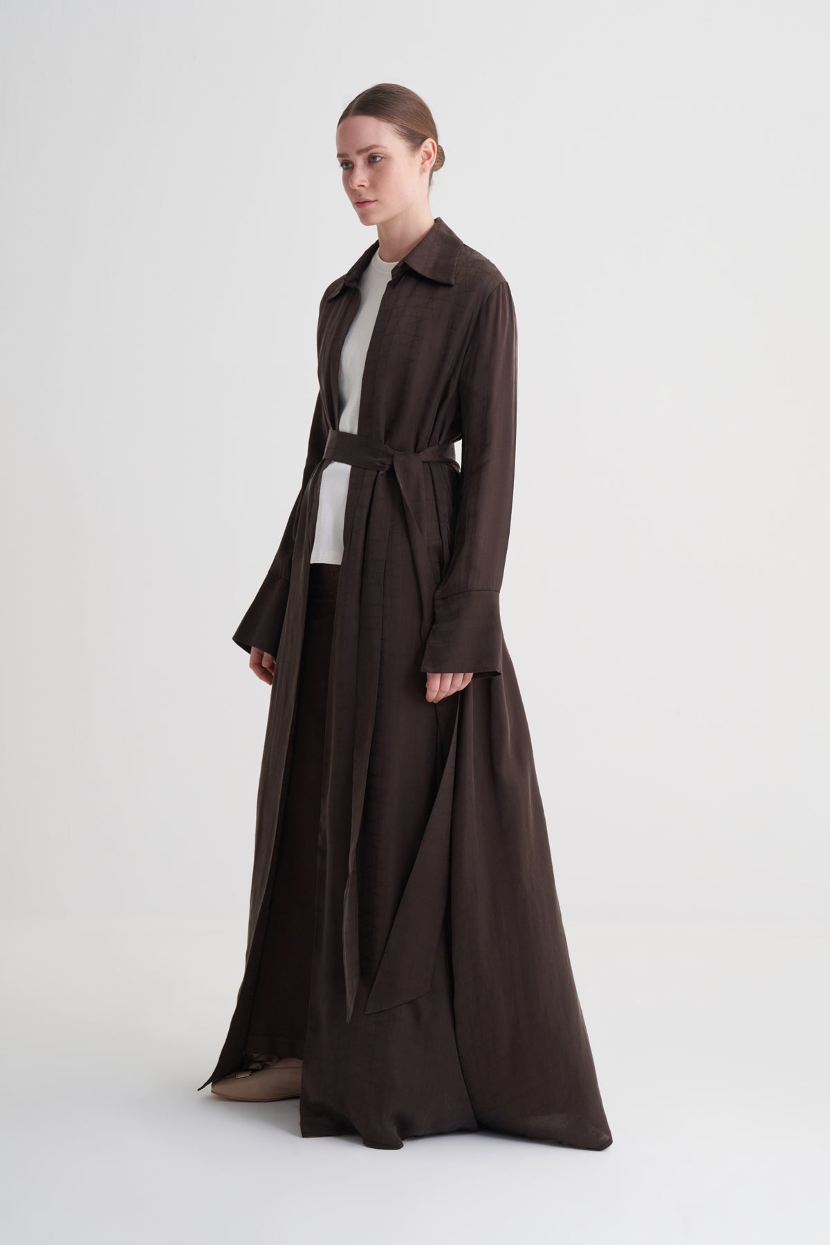 Kahverengi Cupro Jakar Geometrik Abaya