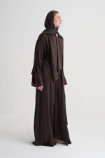 Kahverengi Cupro Jakar Geometrik Abaya Şal Takım