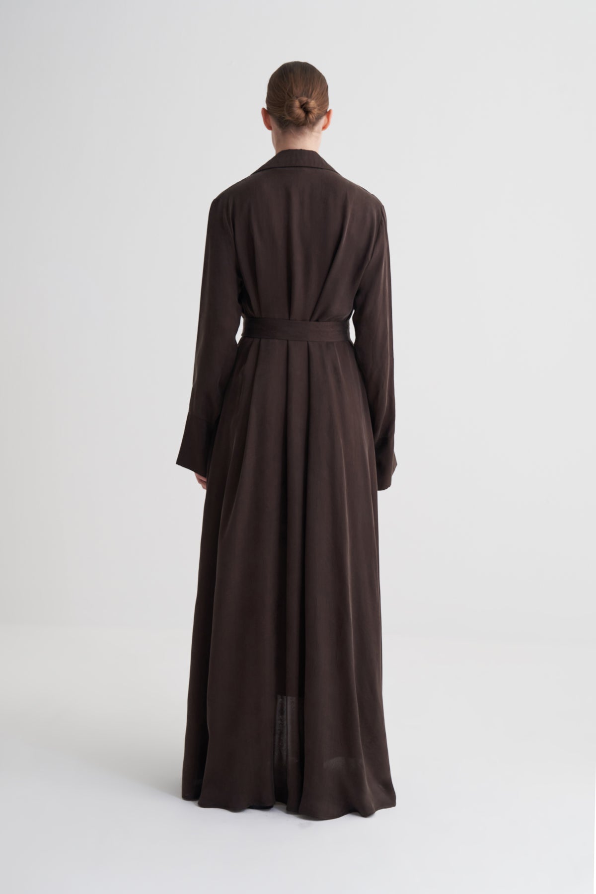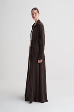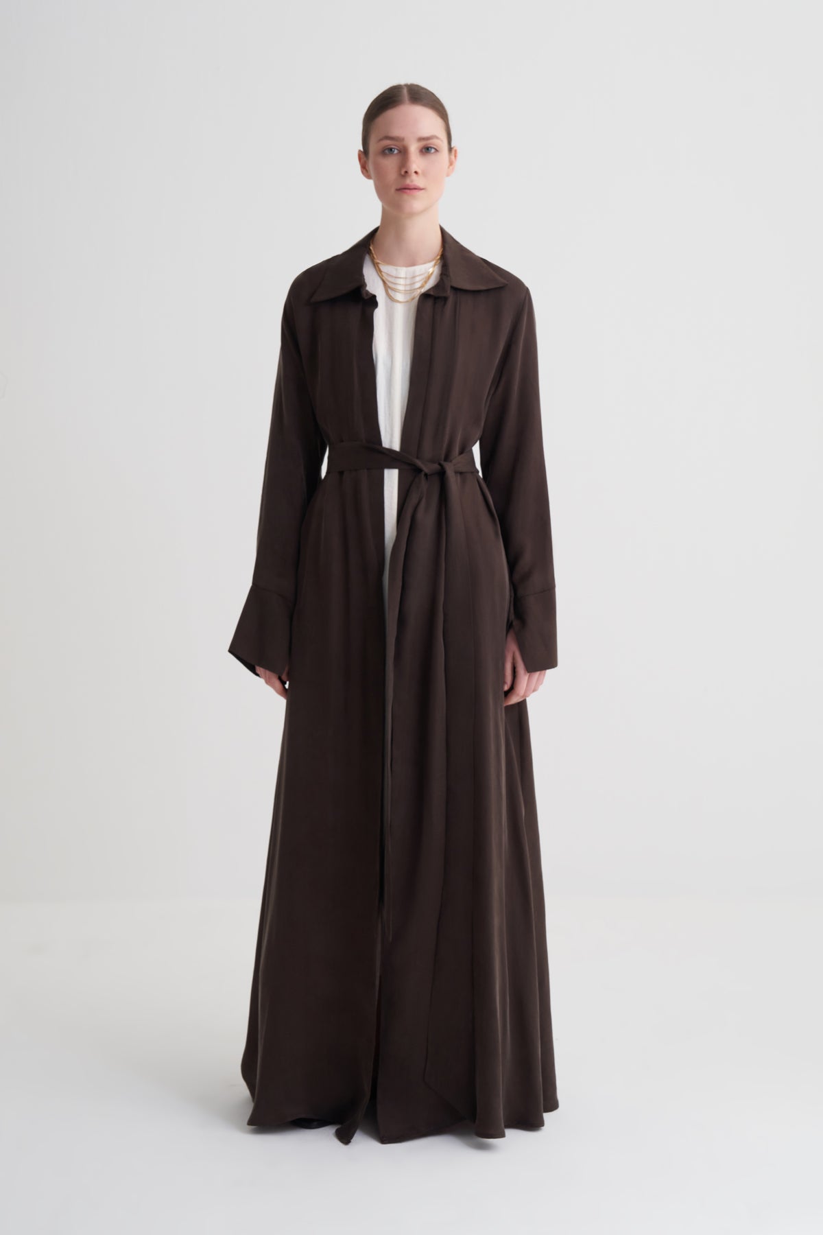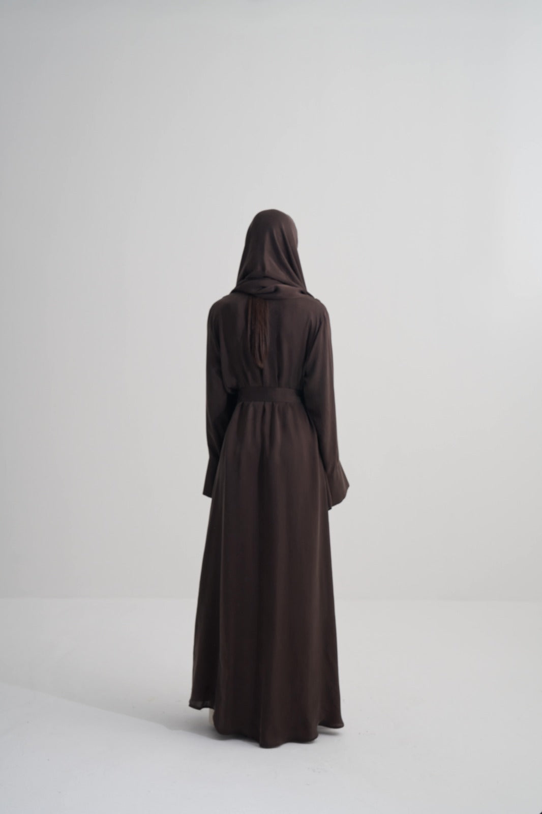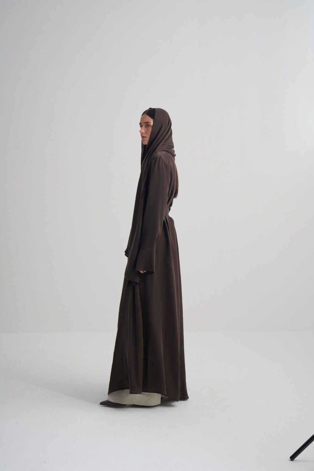 Kahverengi Cupro Jakar Yapraklı Abaya