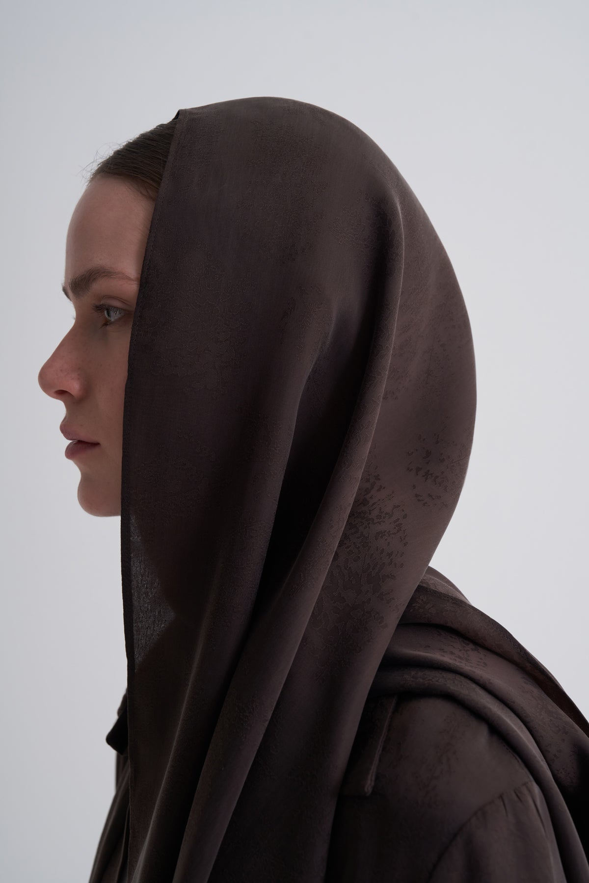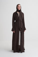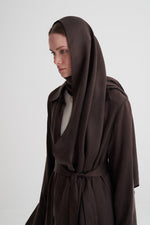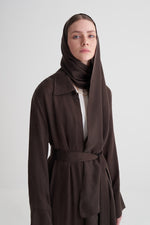 Kahverengi Cupro Jakar Yapraklı Abaya Şal Takım