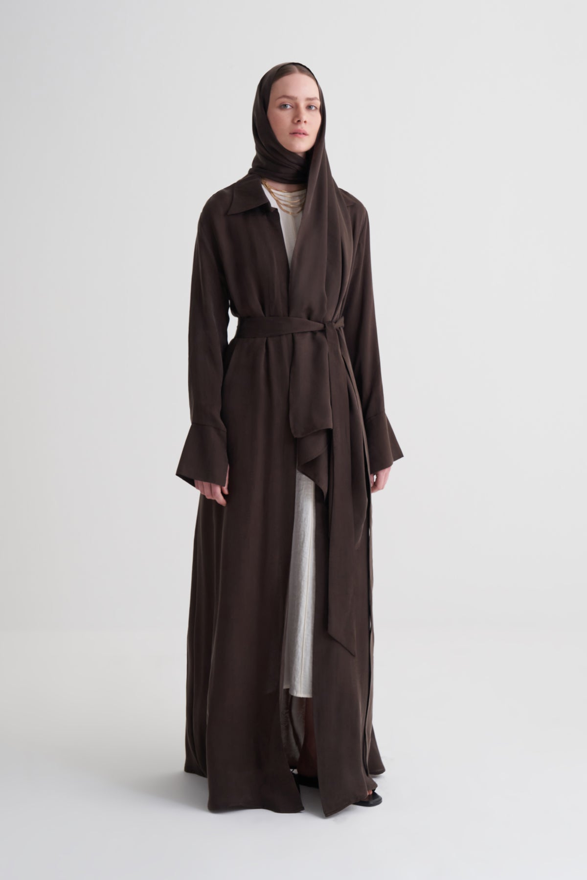 Abaya'da İsteğe bağlı takılan kemer mevcut.