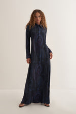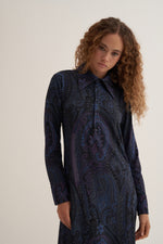 Lacivert Paisley Elbise