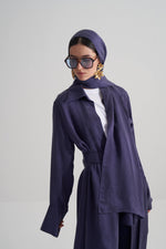 Morcivert Cupro Jakar Çiçekli Abaya Şal Takım