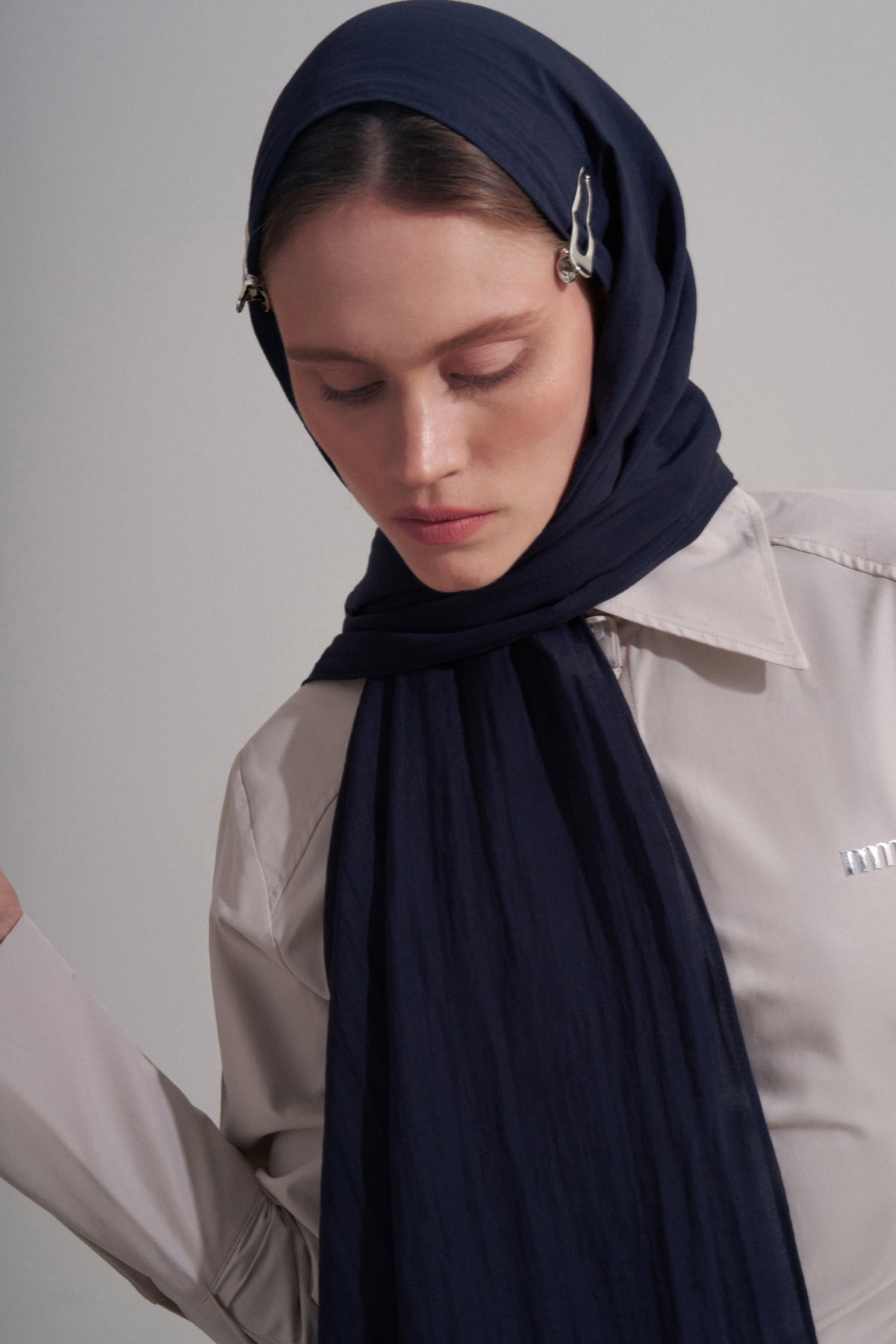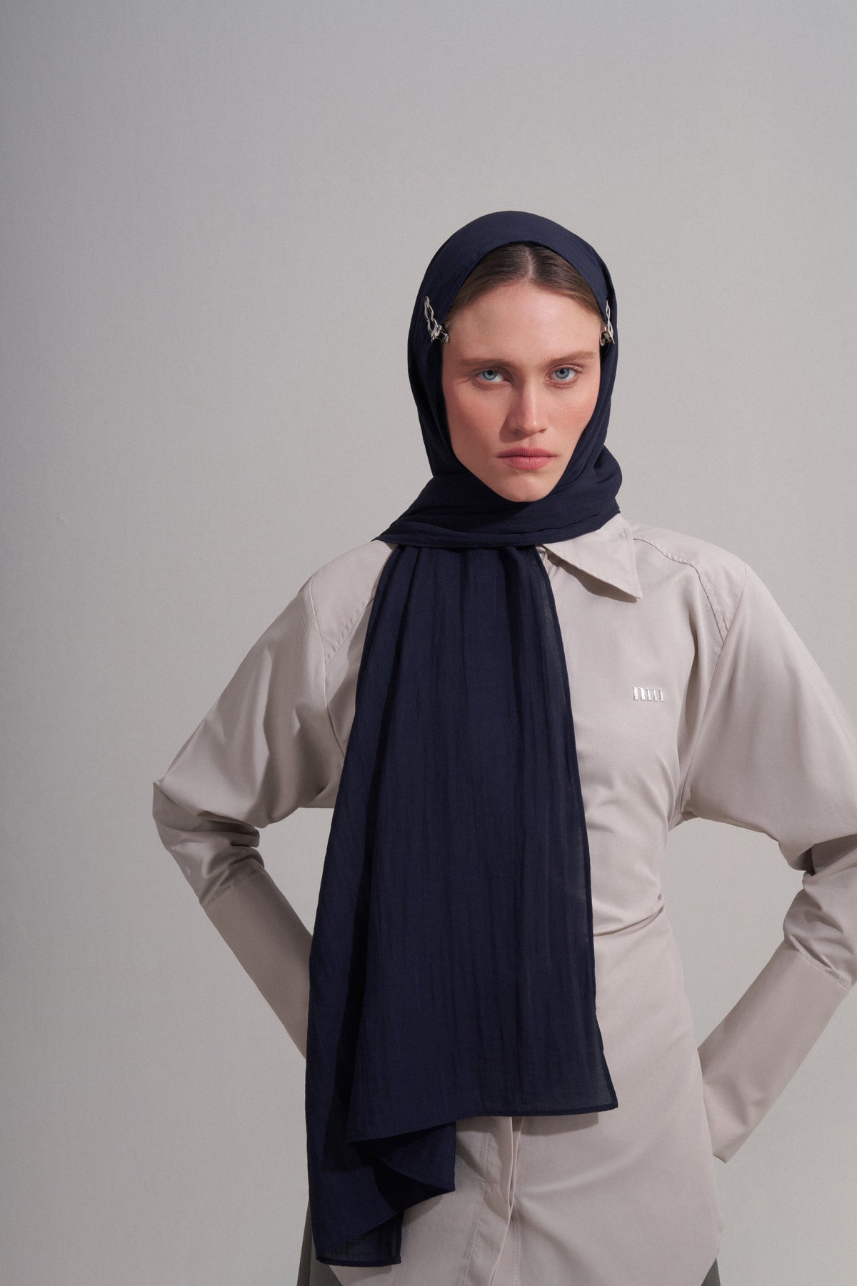 Lacivert Kıvrımlı Şal