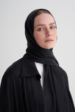Siyah Cupro Jakar Çiçekli Abaya Şal Takım