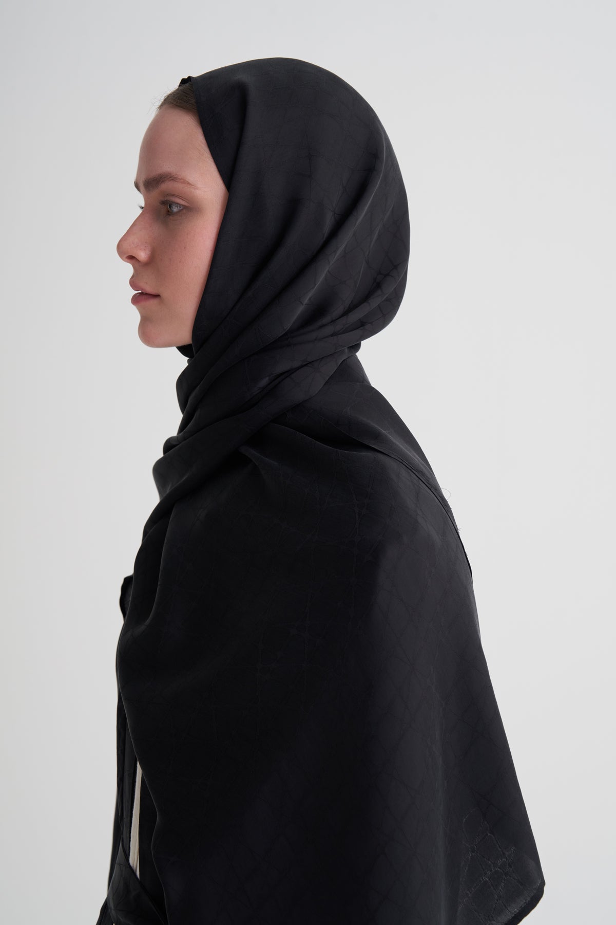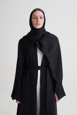 Siyah Cupro Jakar Geometrik Abaya Şal Takım