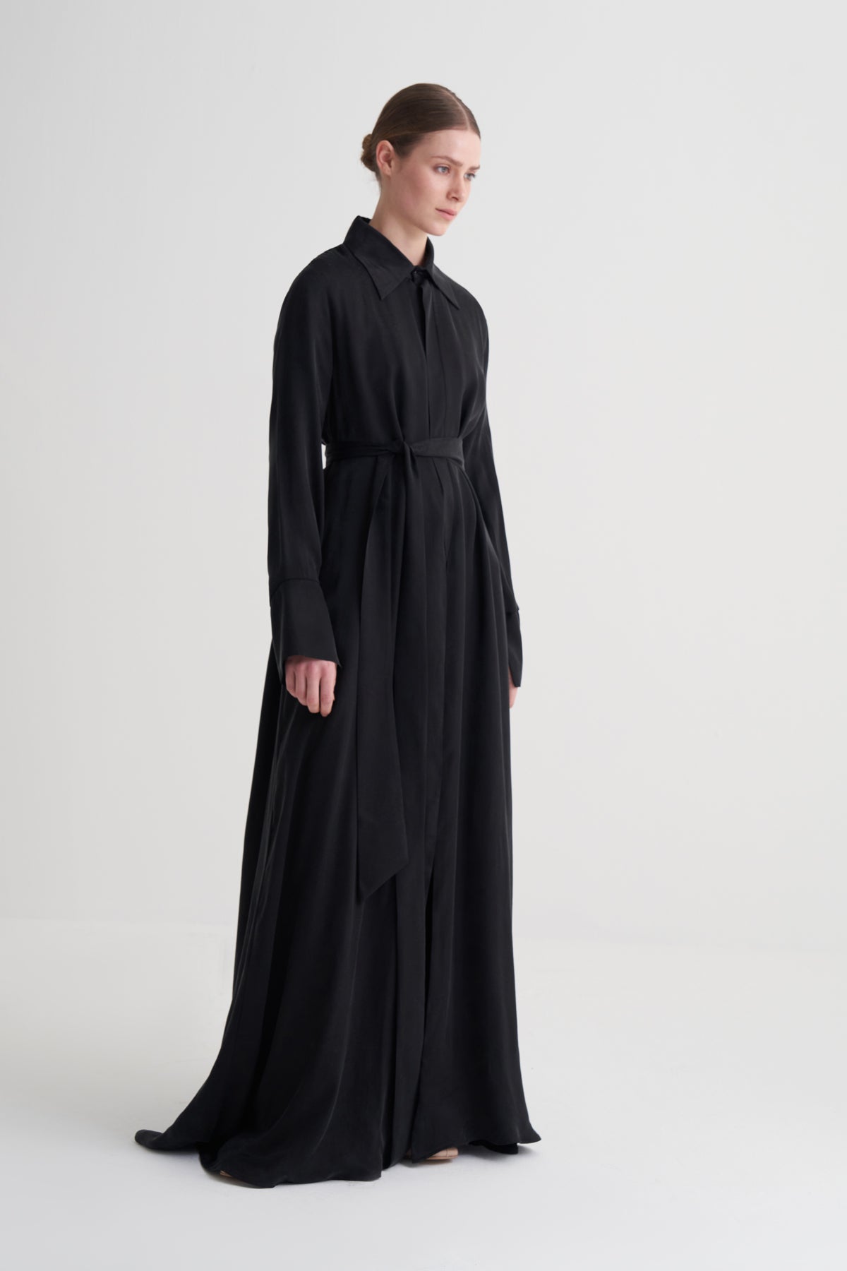 Siyah Yapraklı Cupro Jakar Abaya