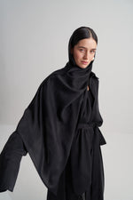 Siyah Cupro Jakar Yapraklı Abaya Şal Takım