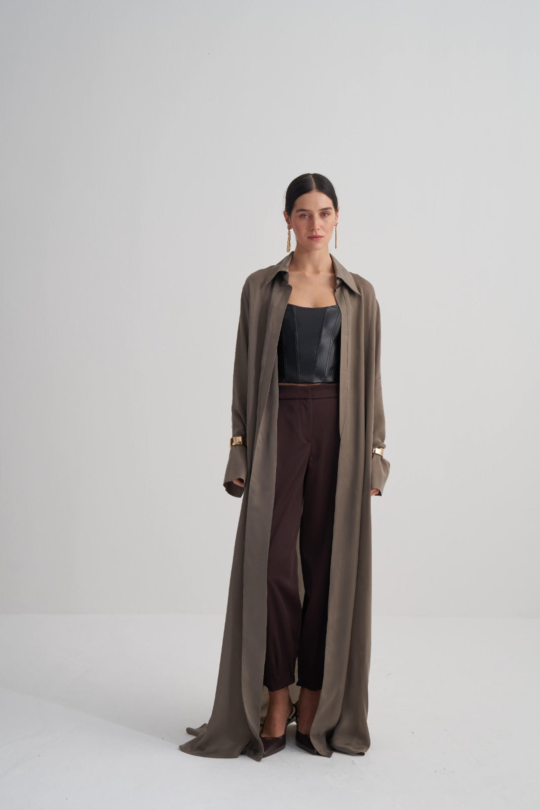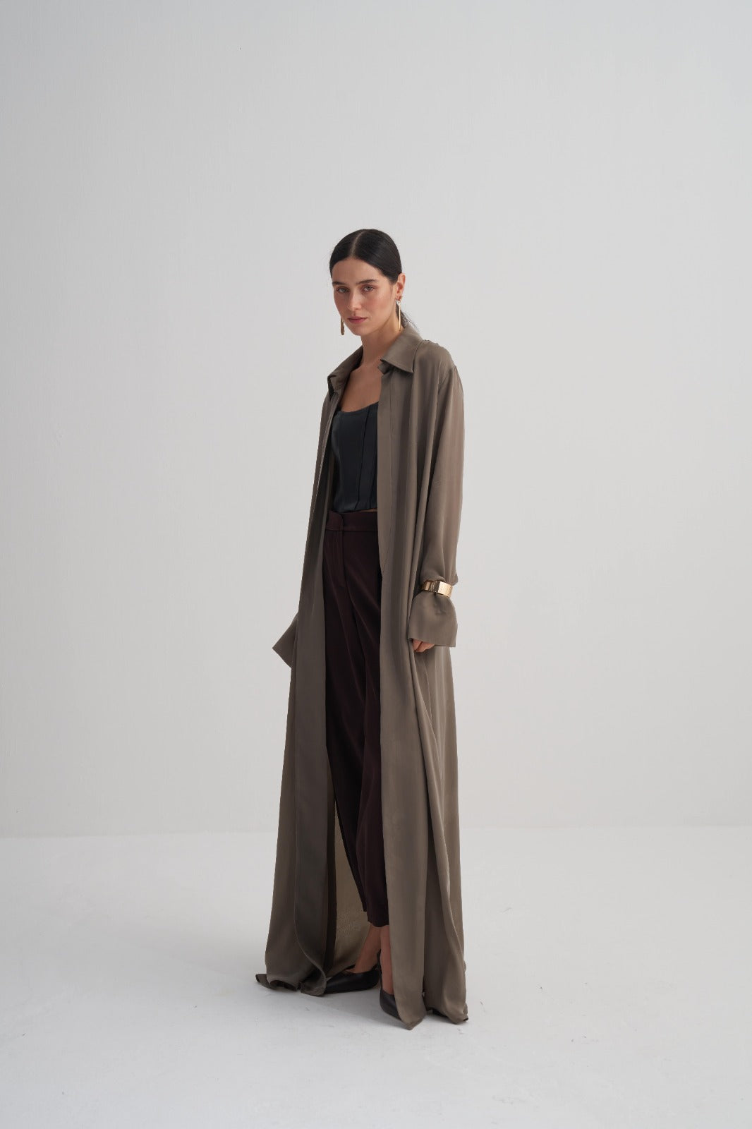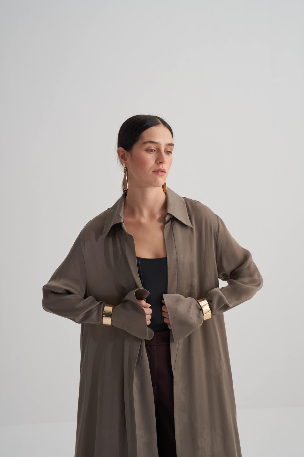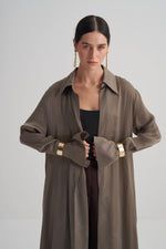 Yeşil Cupro Jakar Çiçekli Abaya