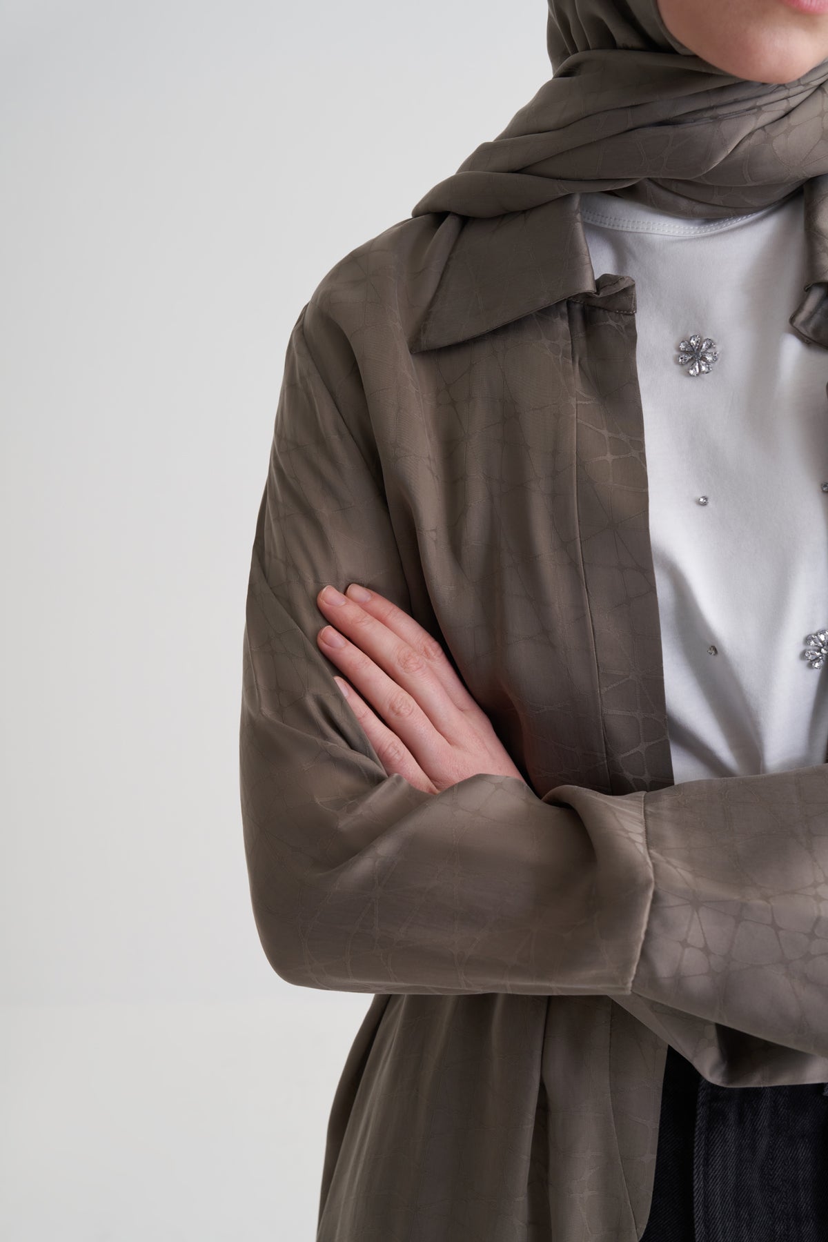 Vizon Cupro Jakar Geometrik Abaya Şal Takım